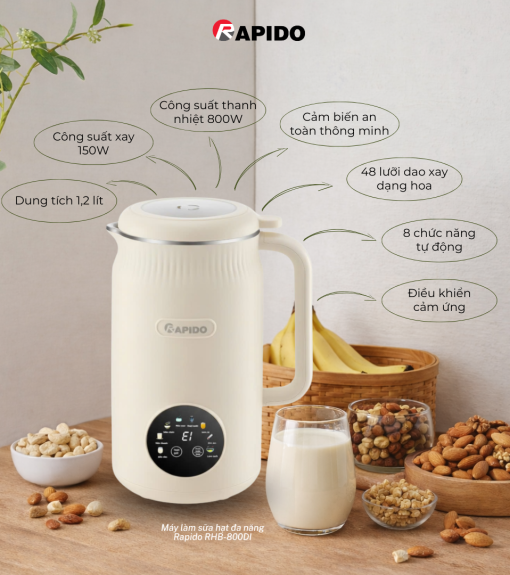 Máy Làm Sữa Hạt Đa Năng Rapido RHB-800DI (Màu Kem Ivory) – Tiện Nghi Cho Bếp Hiện Đại
